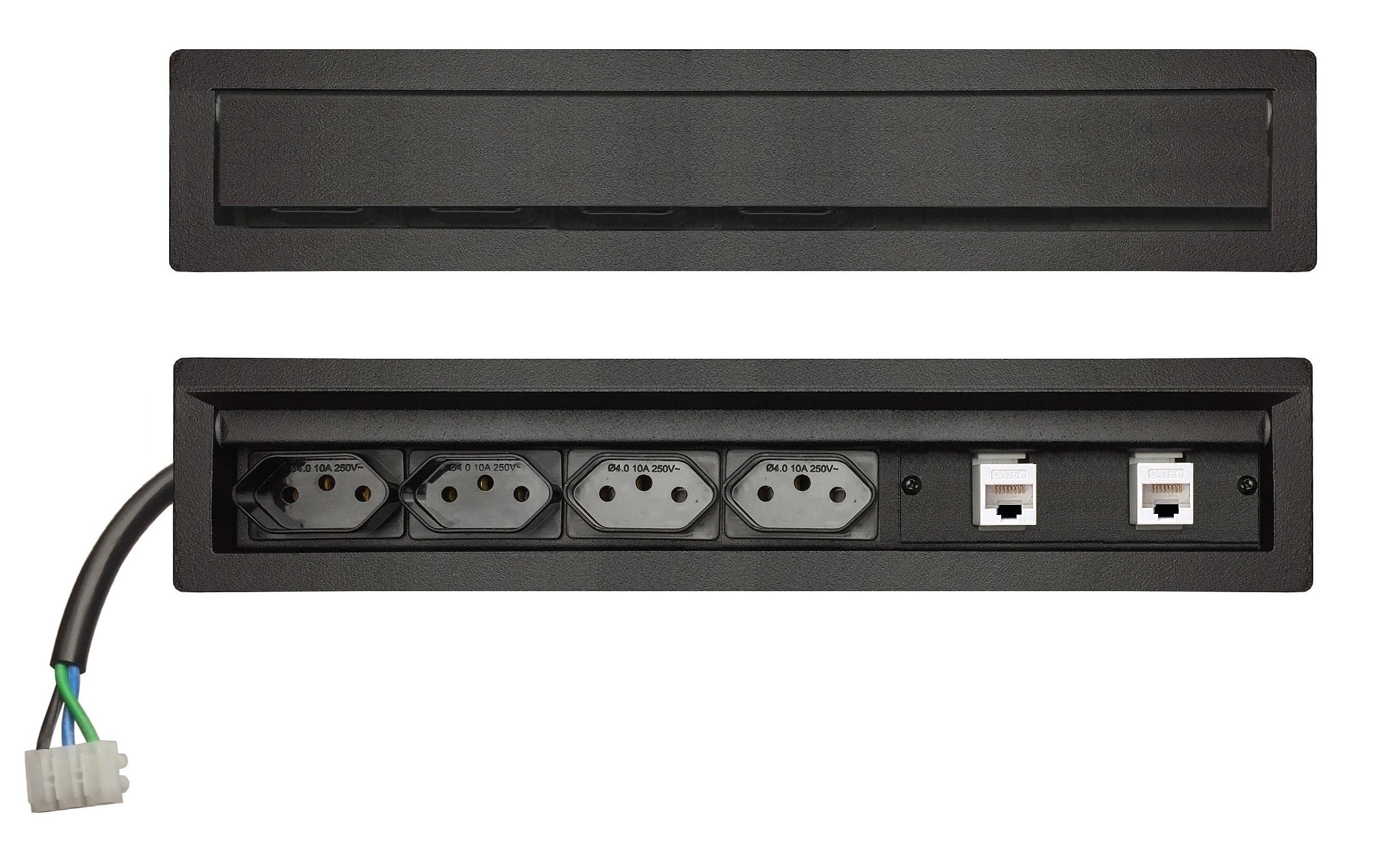 Caixa de tomada estilo regua para embutir fabricada em liga de aço 1008. A caixa possui um diametro de 30cm x 5,8cm e traz um design moderno e elegante agregando qualidade e robustez. É fabricado conforme as normas internacionais de segurança elétrica para Tecnologia da Informação ( TI ). Possui acabamentos nas cores preto microtexturizada, prata ou branco.
